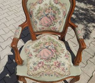 Fauteuil bergère style louis xv en merisier, tapisserie en excellent état. Hauteur 85 cm, largeur 55 cm, profondeur assise 46 CM Bien à retirer sur la commne de Pérols proche de