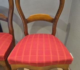 4 chaises de salon , ou cuisine . Excellent etat . Bois massif . Merisier , il me semble.