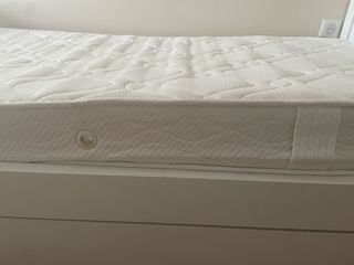 lit en très bon état, de couleur blanche. Il présente quelques marques d'usure mais c'est très discret cf photos. Il est possible de rajouter au-dessus de ce lit, un autre lit pour