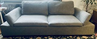 Nous vendons ce beau canapé de marque Roche Bobois. Il est en tissu de qualité, de couleur gris chiné. Les coussins sont rembourrés grâce à de la mousse expansées de densité 22 kg/