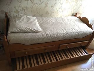 Type : Lit, Literie Lit pin ciré miel 2 tiroirs lit tiroir 2 sommiers lattes 2 matelas très bon état