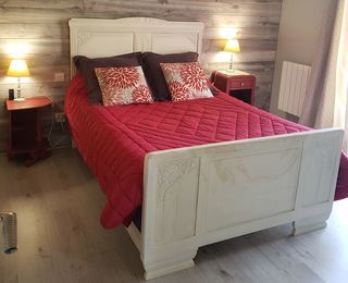 Je vends cette chambre adulte en bois customisée avec un style rustique et élégant. - Couleur : Blanc - Armoire 3 portes avec miroir : largeur 138 cm, profondeur : 45 cm, hauteur