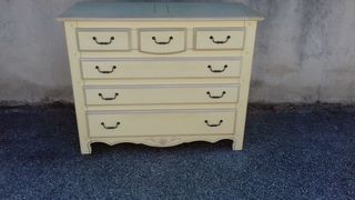 Meubles de Chambre fille en bois massif, rustique, en très bon état. Fabriquée à l'ancienne par un ébéniste par chevillage. Composée : - D'une commode avec 6 tiroirs - D'une