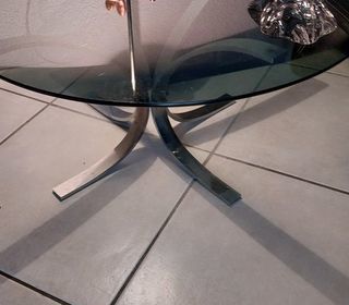 Table basse vintage Année 70 pour Salon, Entré, Coin bureau Diamètre 75cm en Verre fumé Hauteur 34cm