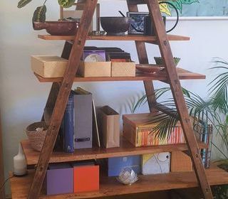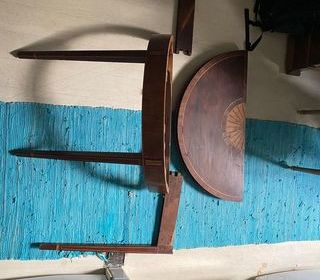 Table originale vendue dans son jus peut être restaurée ou customisée en différentes couleurs, une extrémité arrondie, à placer contre un mur, rallonge sous la table (0,98/1,20 m +