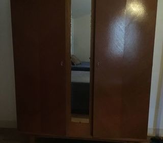 Armoire vintage, très bon état, 2 portes, 1 côté penderie, 1 côté étagère. Hauteur 1m80, largeur 56cm, longueur 1m35. À démonter.