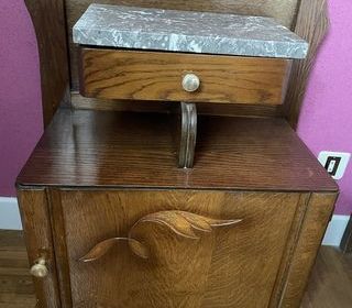 Meuble téléphone vintage avec assise Dimensions longueur 95 cm, largeur 45 cm, hauteur totale 70 cm, hauteur de l'assise 41 cm Bon état, sauf le plateau de la table qui nécessi