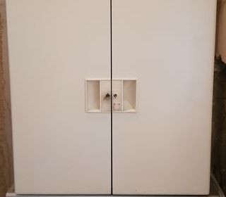 Armoire à pharmacie vintage 2 portes dont une avec une clé Dimensions : 52,5 cm de longueur x 54 cm d'hauteur x 20 cm de profondeur Très bon état