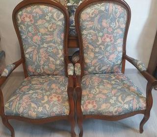 fauteuil vintage peu servi x2, 300€.lit 140 complet meurisier 60€ .bois lit meurisier sans matelas 50€ ,chevets meurisier x2 40€ et 2 tables chevets meurisier 40€ .commode meurisie