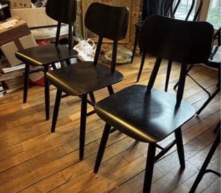 Commode bois massif vintage avec x3 grands tiroirs et x6 poignées en métal couleur or pieds boules en bois