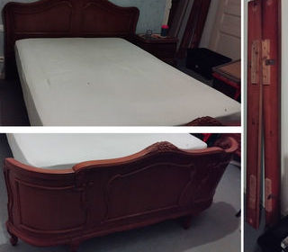 Une bibliothèque vitrine en meurisier 1 bahut 3 portes une bonnetiere meurisier 1 meuble tle meurisier 2 petits meubles merisier I lit Louis Philippe meurisier plus armoire assorti