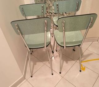 Ensemble de 4 chaises Vintage en formica vert En très bon état Esthétique, Solidité et Stabilité Très facile à entretenir