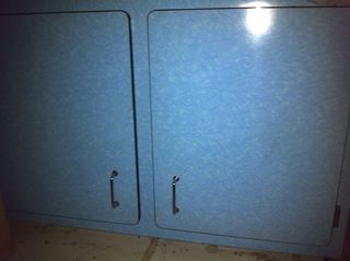 Vends 1 buffet mural formica bleu , 2 portes, 1 étagère excellent état 50 €.