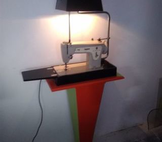 Lampe machine à coudre vintage Singer En fonte fabrication et installation artisanal Abat-jour en tôle et son éclairages par Petit bouton d'origine en dessous du chapeau Les