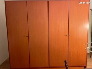 Armoire un côtés penderie un côtés étagères 4 portes Hauteur 2 M 01 Profondeur 54 cms Largeur 2 M 23