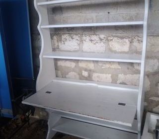 Bonjour, 2 bureaux rose et blanc combiné avec étagères. La tablette est repliable en mode secrétaire en bon état. Bois massif - solide Le prix est unitaire (fois 2 pour la pair