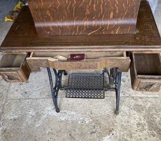 Machine Singer en parfait état avec ustensiles de couture et coffre fermant à clé. Peut servir de décoration ou pour coudre. N'a eu qu'une propriétaire et utilisatrice.