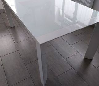 Table dessus verre opaque L180xl90xh75 + 2 allonges de 0.40 soit L260xl90xh75 bon état général à voir.