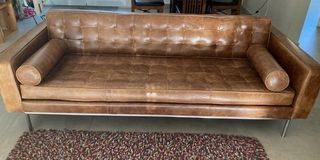 CAUSE DEMENAGEMENT ET DOUBLE EMPLOI, vend CANAPÉ CUIR MIKADO, en cuir vieillit. Valeur neuf 1699€ (Maison du monde) Longueur 2,1m, profondeur 0,88m et hauteur 0,75m. Disponible