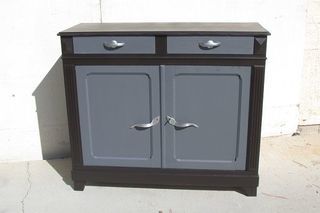 Buffet 1900 en bois naturel, noir et gris Buffet ancien art déco restauré en bois naturel , deux portes, deux tiroirs , poignées en aluminium , colorisé en brun-noir et gris-ardoi