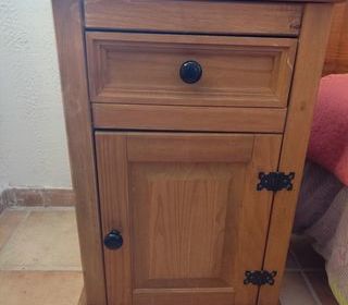 Table de chevet en bois Couleur miel Un tiroir Une étagère au milieu Hauteur 74 Largeur 50 Profondeur 35