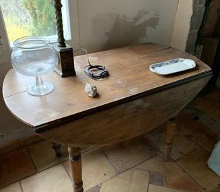 Table ronde et pliable (4 personnes) - vendue nettoyée et traitée à la cire d'abeille.