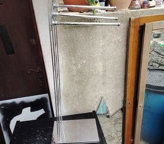 bonjour mesdames et messieurs je vends ce porte-serviette 3 pans avec la possibilité de mettre gant de toilette en bout pour optimiser l'espace. prendre rendez-vous parking du Lid