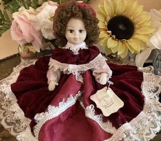 Poupée ancienne porcelaine céramique rouge grenat majestueuse complète création artisanat italienne creazioni DI CASTOLDO TERESA EMMEGI