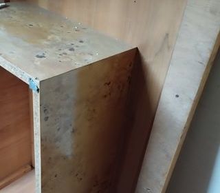 Buffet à l'origine merisier remis au goût du jour + 2 chevets (gratuits) Très grande dimension et robuste, 4 placards, 4 tiroirs. Long : 215 Larg : 54 Prof : 40 Haut : 98