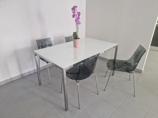 Tables en verre extensible en 2 éléments distinctifs support acier Petite 50cm. X 50cm. Grande 90cm. X 45cm. À enlever sur place, pas de livraison