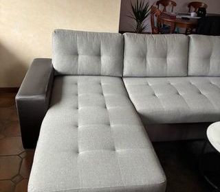 Vends Canapé convertible avec 1 pouf- Tissus anthracite gris-hetre-Suspensions ressorts- Matelas mousse 23kg/m3- Couchage 148*209-Assise mousse 27kg/m3- Ensemble excellent état,