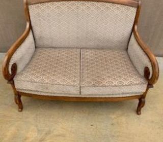 Petit CANAPE 2 places - Déco Style Restauration Tissu velours coloris beige Belle boiserie long 120cm prof 65cm haut 91cm