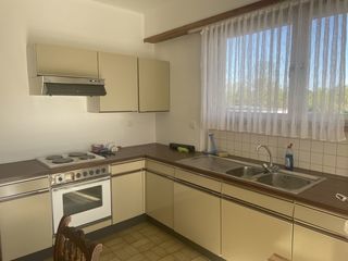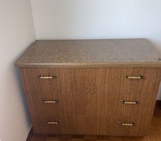 Table originale vendue dans son jus peut être restaurée ou customisée en différentes couleurs, une extrémité arrondie, à placer contre un mur, rallonge sous la table (0,98/1,20 m +