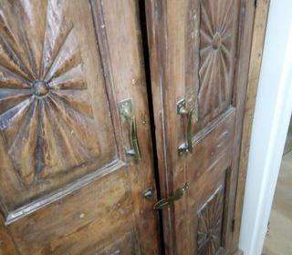Vends armoire en bois exotique Largeur - 86/90.5cm Hauteur - 144.5cm Profondeur - 32/35cm 4 tablettes intérieures Meuble d'origine Inde/Pakistan Remise en main propre Paiement en