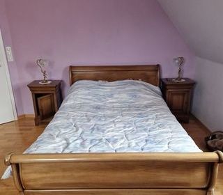 Chambre complète merisier massif: "fabrication alsacienne" lit 14*190 avec sommier et matelas (belle literie) 2 chevets 46 * 35 H 68 1 commode 3+1 tiroirs 120 * 50 H 87 1 armoi