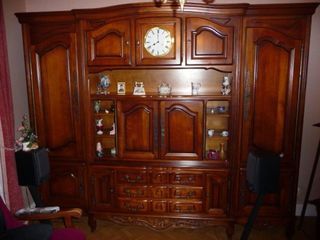 Je vous propose cette belle bibliothèque en bois massif L'horloge et le luminaire y sont intégrés Essence du bois: merisier Fabrication: Klein Albert