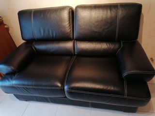 Canapé en cuir de buffle noir avec surpiqure blanche Longueur 2.02m Hauteur 0.94 Profondeur0.96 Canapé non convertible Bon état Prix300€ Canapé visible a Anglet