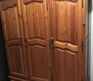 Vends cause déménagement, belle armoire en pin massif verni, 3 portes, couleur miel Etat neuf.