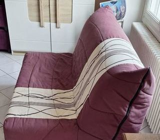 Vends clic-clac 2 places, largeur 1m42, pratique et fonctionnel, idéal pour studio, appartement, chambre d'amis ou logement étudiant. Se transforme facilement en lit Structure