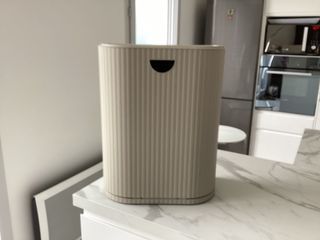 Poubelle design neuve jamais servi. Gris clair. Genre plastique. Peut être posée sur le sol ou accrochée. Hauteur : 46,5 cm. Largeur : 20cm. Longueur : 36, 5 cm
