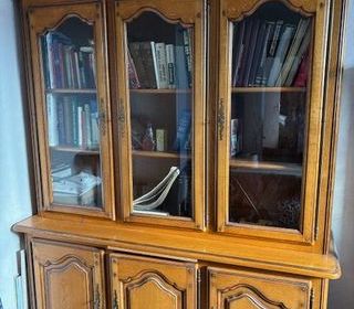 Grande vitrine bibliothèque buffet en chêne massif Bibliothèque 3 portes en parfait état en chêne massif de très bonne qualité, acheté chez COQUIN Il y a juste un petit impact de