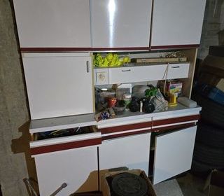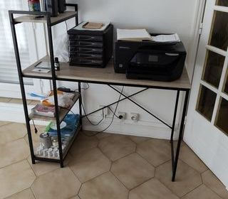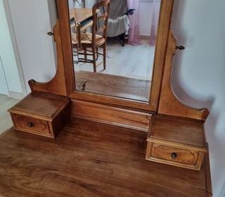 Vends unbuffet Vaisselier 2 portes 3 tiroirs pour le bas et 2 portes coulissantes avec 2 étagères pour le haut et la table ronde. Corps et façades en panneaux de particules revêtu