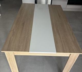 Pour raison de changement de décor, vends table de salle à manger en merisier massif, signée "Camille et Vence", avec 2 rallonges, Possibilité 4, 6 ou 8 couverts. Excellent état