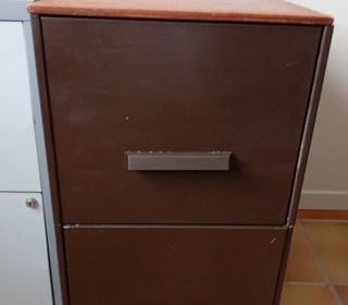 CLASSEUR POUR DOSSIERS SUSPENDUS METAL - DESSUS BOIS 2 TIROIRS DIMENSIONS L 63cm - H 63 cm - Largeur 39 cm H avec roues 72 cm A RECUPERER ET REGLER SUR PLACE