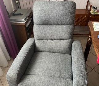 Fauteuil de relaxation en excellent état, en tissu gris chiné, idéal pour les petites siestes de l'après-midi ou autres, et confortable pour lire le journal, comme l'on veut.cnfrta