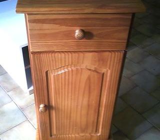 confiturier en pin massif T.B.E 1 tiroir + 1 porte ( 2 niveaux ) Haut : 89 / Larg : 44 / Prof : 39 Pieds boule - pas d'envoi