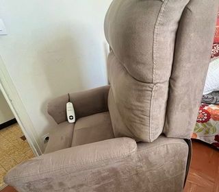 fauteuil confort électrique avec fonction releveur perle mini gris taupe revêtement velours - largeur assise 50cm très peu servi - état neuf.