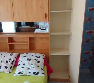 Cuisine complète en bois massif cérusé avec évier, lave vaisselle, plaque 4 feux gaz, four, micro-ondes, réfrigérateur. Dimension 3M30x60cm et 2M 80 x 45 cm voir photo. Bon état