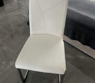 Vends lot de six chaises de salle À manger couleur blanc 5 chaise comme neuf aucune tache et 1 chaise légèrement abîmer. Doit partir rapidement !