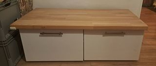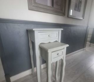 Commode 3 tiroirs en bois merisier repeint en blanc et gris bon état